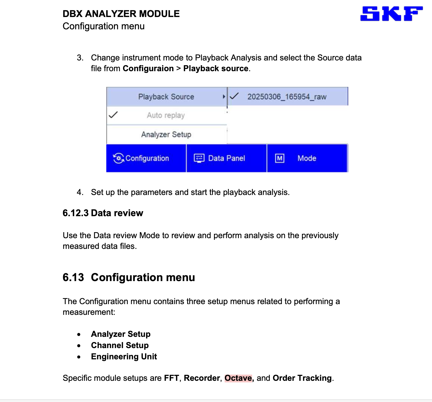 Dear SKF Microlog dBX user, unfortunately this is a typo in the user manual and document will be amended. The Microlog dBX does not have a specific module for Octave analysis at the moment. I trust this answers your question.